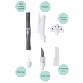 The set includes a double-sided handle that allows you to use two attachments at the same time.